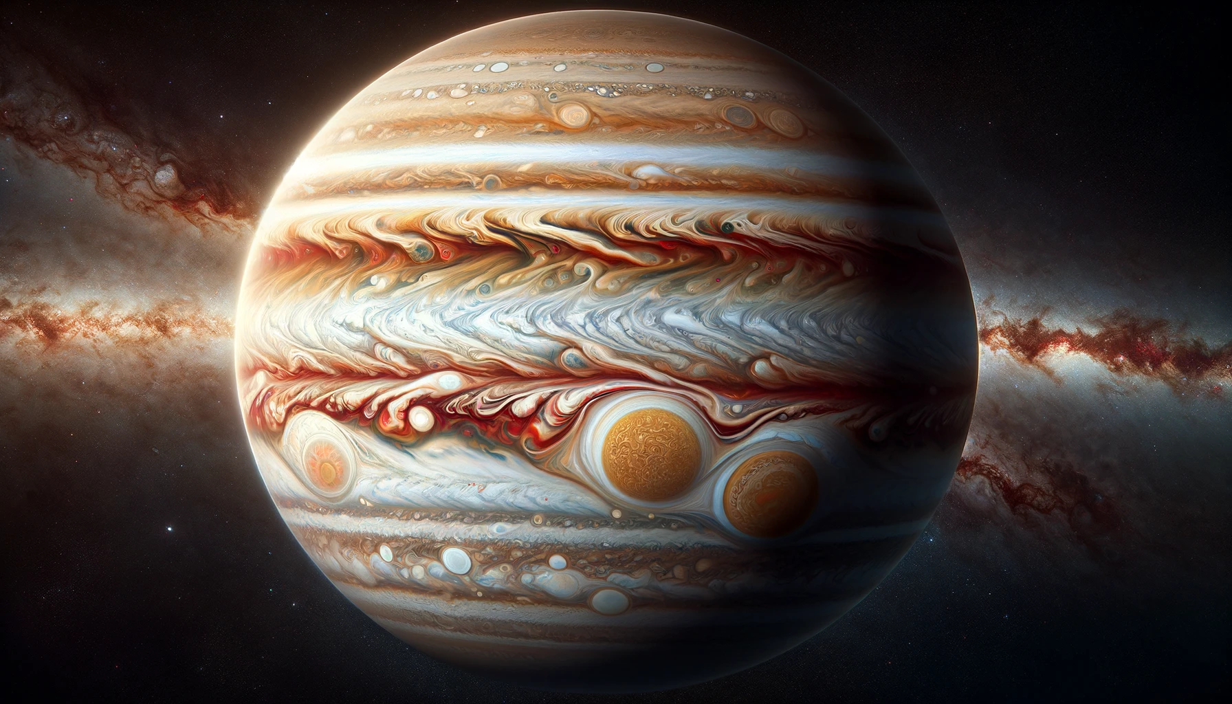 - Jupiter: The largest planet in our solar system, a swirling gas giant with a prominent Great Red Spot and numerous moons, including the volcanic moon Io and the icy Europa.